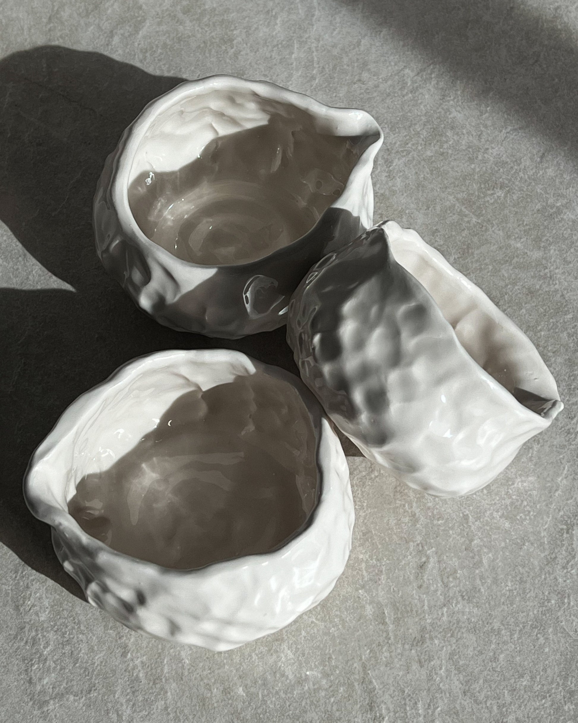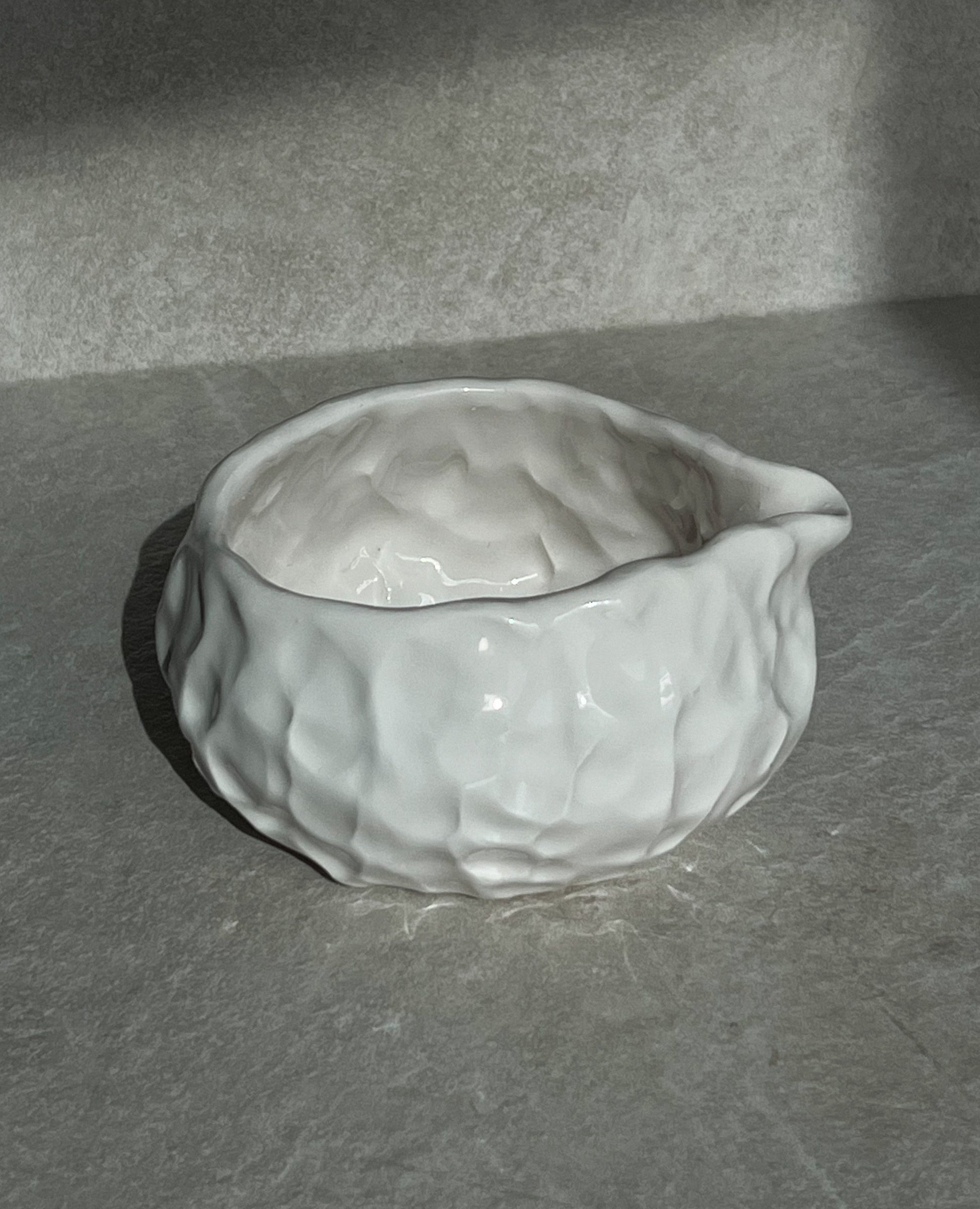 Chawan artesanal creado en colaboración por la artista italiana Claywa en Milán. Cada cuenco ha sido moldeado completamente a mano, dando vida a formas orgánicas y pliegues únicos que nacen del gesto lento y consciente de la artesanía. Ninguna pieza se repite: cada chawan tiene su propia personalidad, su ritmo y su textura, pensados para acompañar momentos de calma y presencia en tu ritual de matcha.