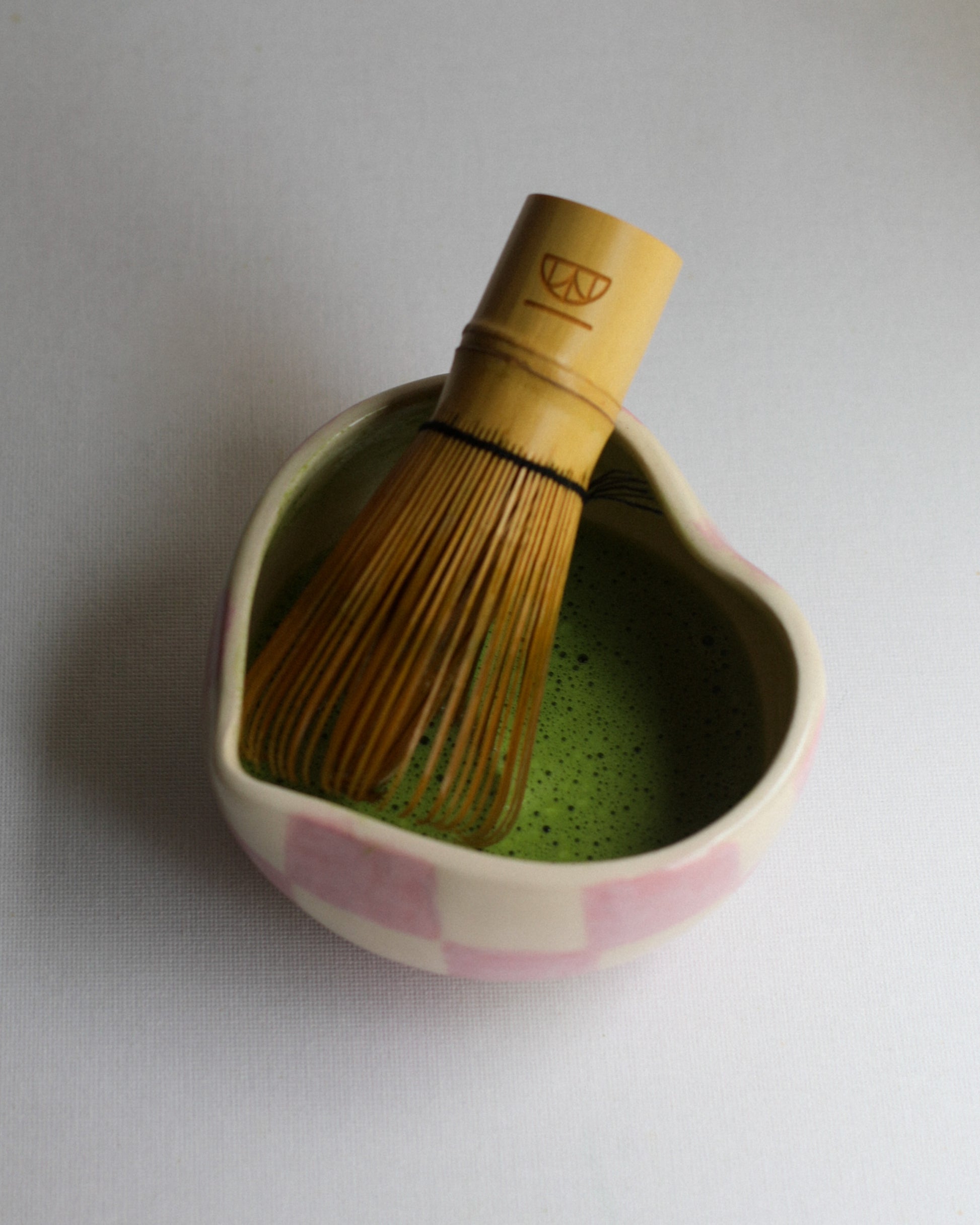 Su diseño sutil en forma de corazón es un recordatorio visual de la importancia de cuidarte con cariño, mientras disfrutas de un matcha hecho con calma.