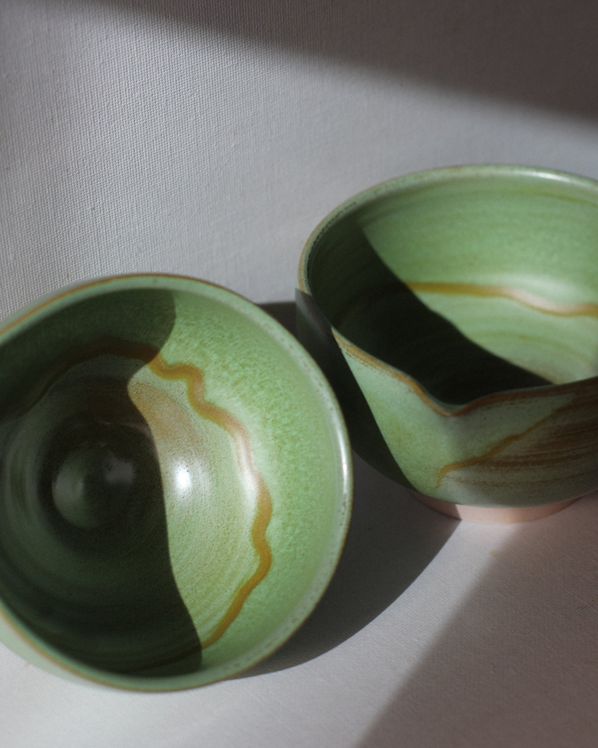 Añadimos un nuevo despertar a nuestra colección de cerámica refinada: Aurora. Cada pieza ha sido creada a mano, con curvas suaves y un esmalte que captura la belleza del alba: verdes y azules serenos, con vetas marrones que evocan la tierra bajo los primeros rayos de sol, ese momento de serenidad al empezar el día. Sencillez y elegancia en una pieza; disponible en chawan, taza y naoshi. Hecho a mano con dedicación por nuestra nueva artesana en su taller de cerámica en Girona, este chawan fusiona la tradición japonesa con la maestría de la cerámica artesanal española.