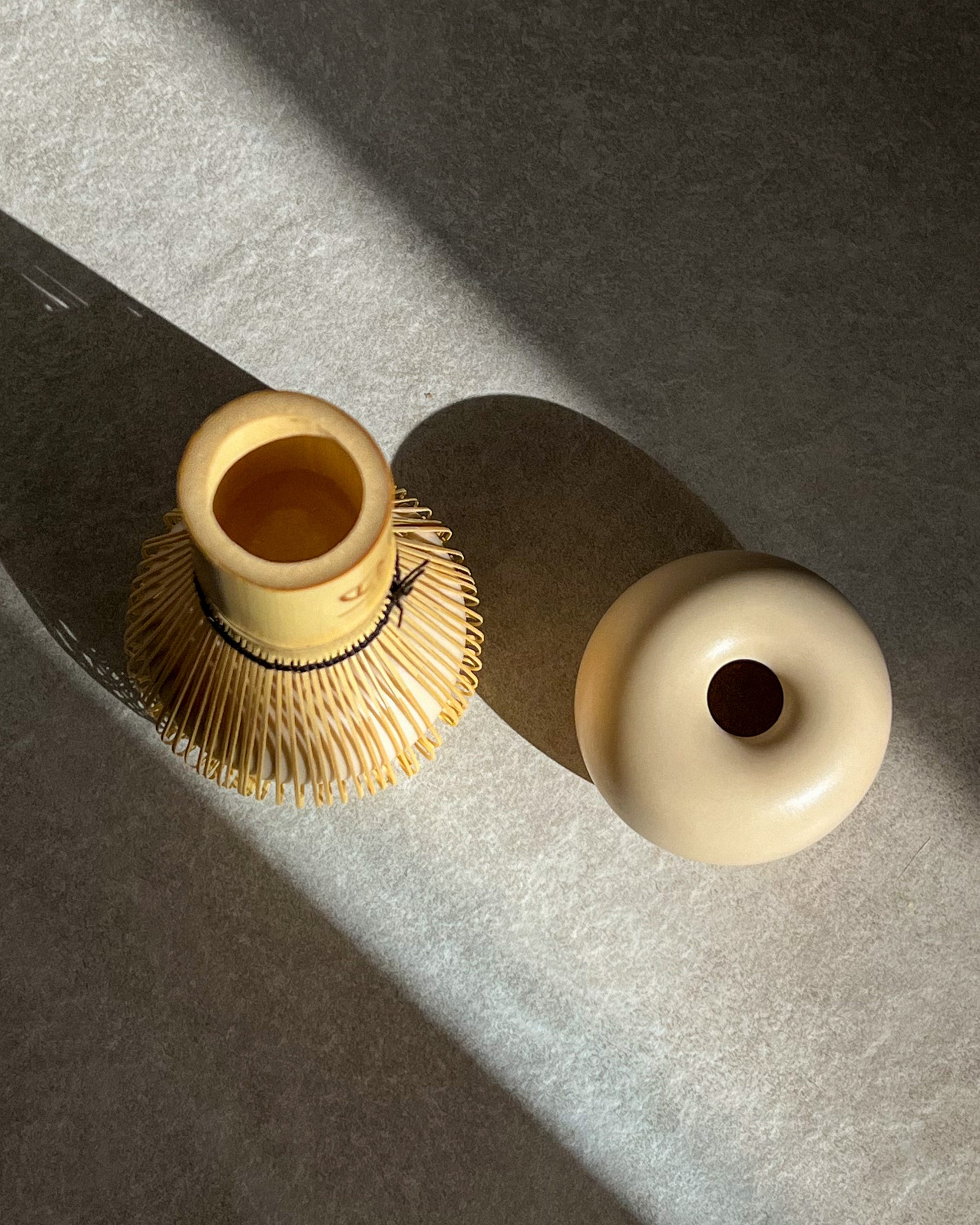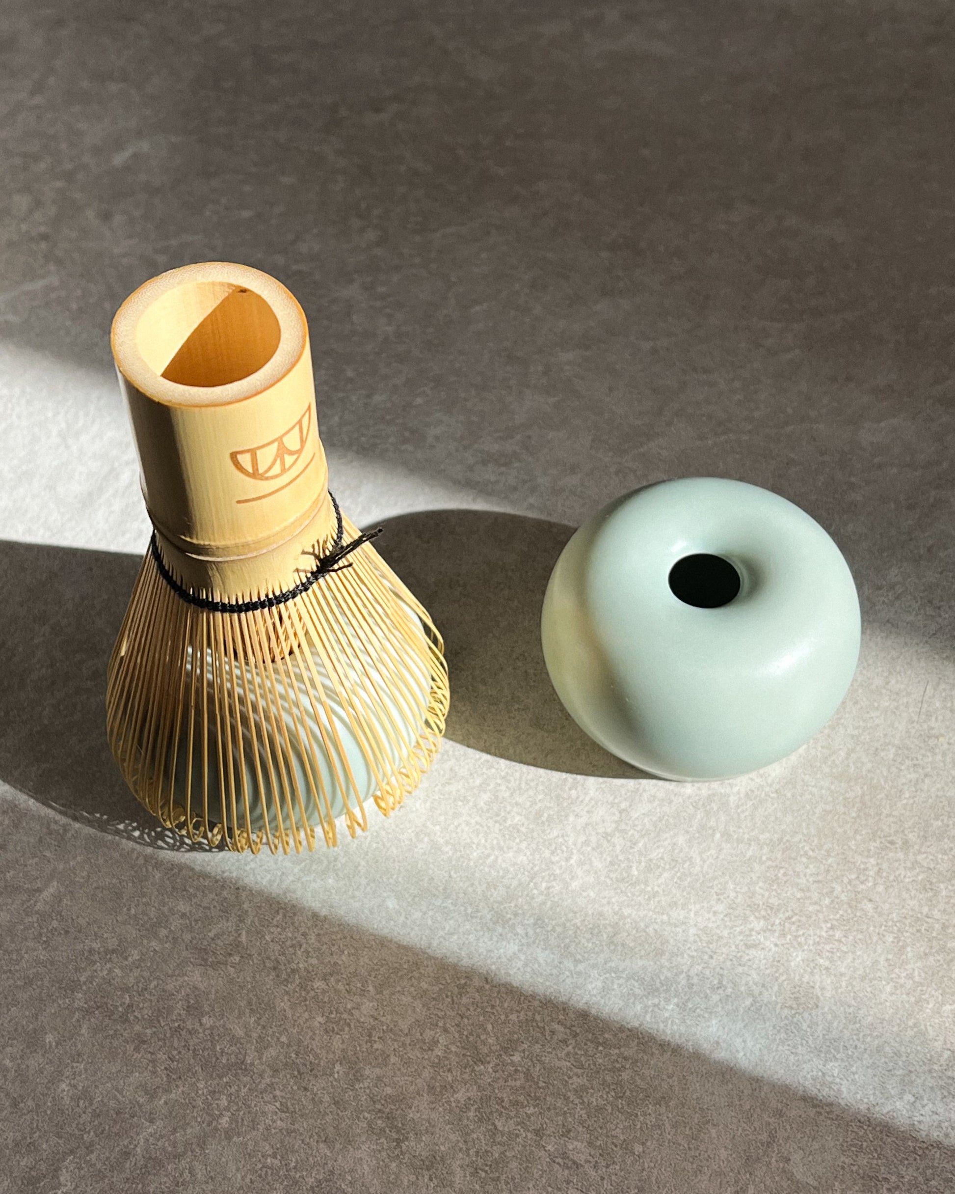 Te presentamos nuestro nuevo Naoshi, un soporte moderno para el chasen, el batidor de bambú utilizado en la preparación del matcha. A diferencia del modelo artesanal, este diseño apuesta por una estética más contemporánea: una silueta redonda, minimalista y elegante, disponible en dos combinaciones de color que evocan calma y naturalidad: verde menta y marrón arena.