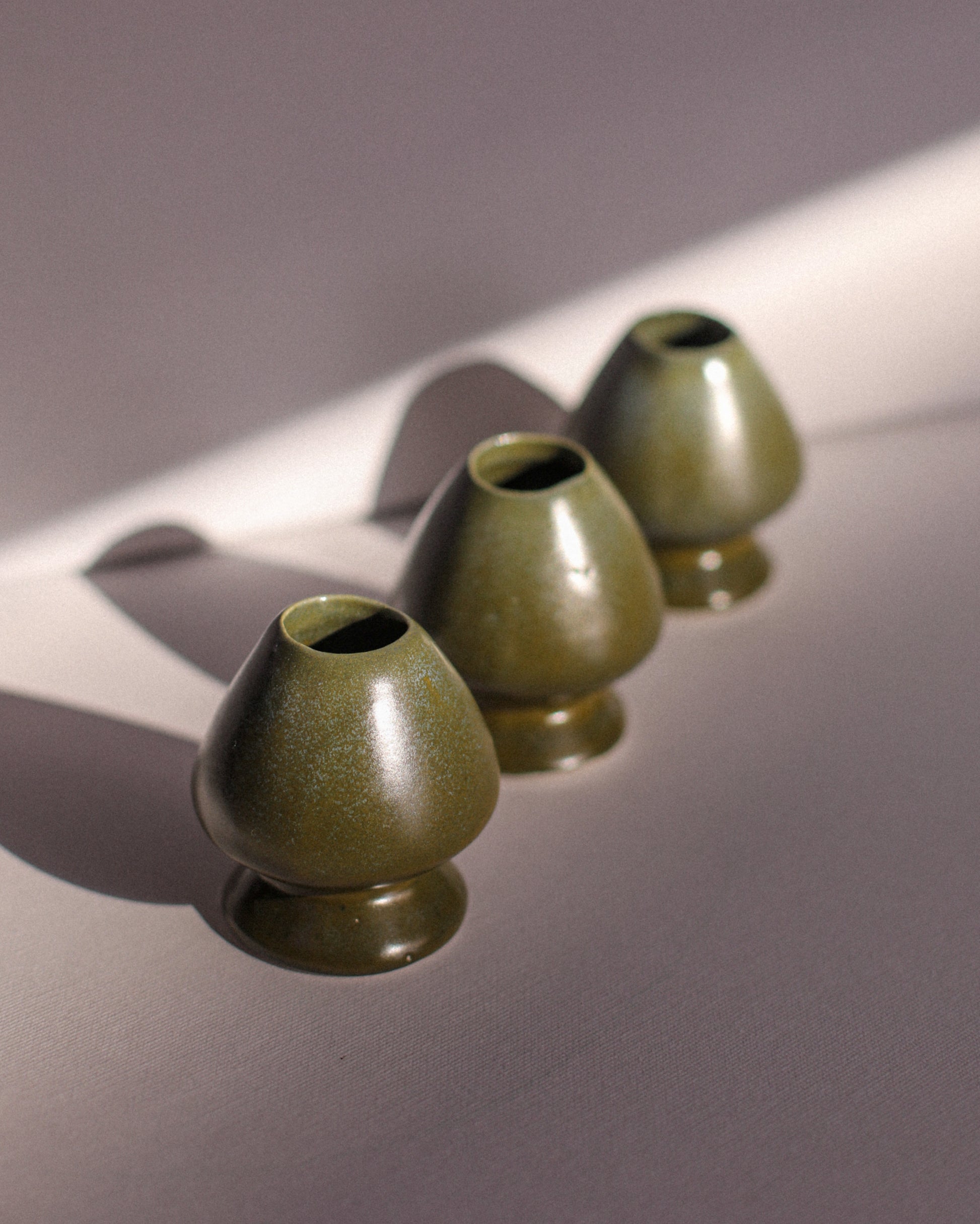 Te presentamos nuestro primer Naoshi Refinado, el soporte tradicional para el chasen (el batidor de bambú usado para preparar el matcha). Hecho a mano en el taller de nuestra artesana en Girona, el naoshi es una pieza pensada para proteger y preservar la forma de tu chasen, asegurando que siempre esté en perfecto estado y listo para usar.