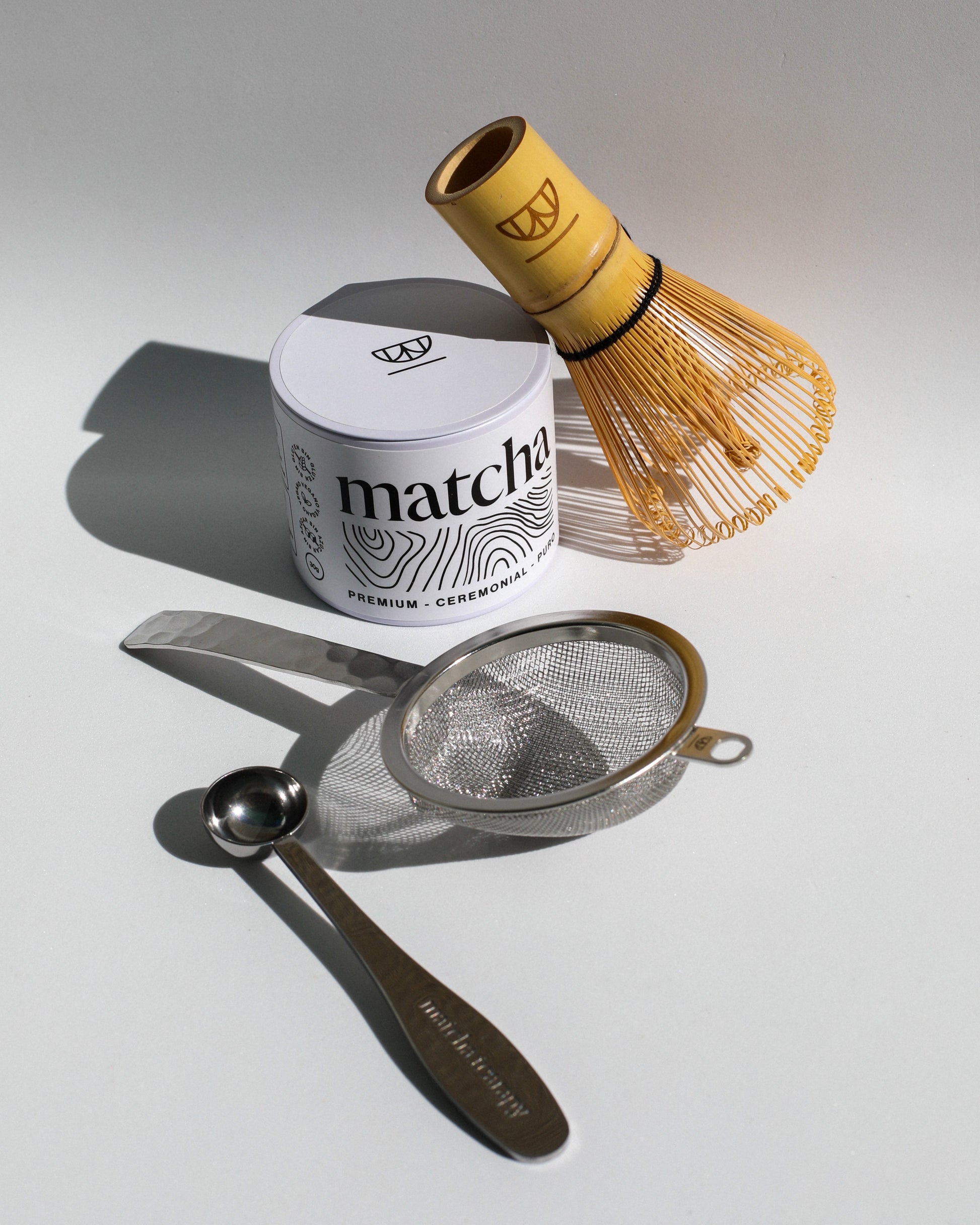 Cuchara medidora de acero inoxidable: Mide con precisión 1 g de matcha por porción.